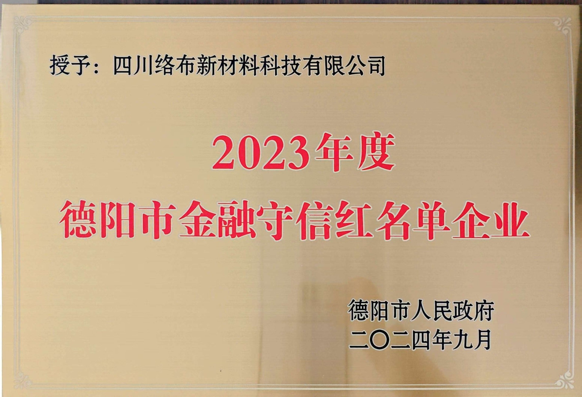 2023年度德阳市金融守信红名单企业