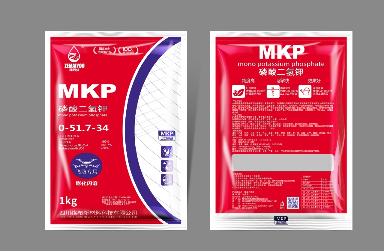 本品是采用优质高纯度飞防级磷酸二氢钾为原料,利用络布实用新型专利技术和膨化工艺精制而成的高端飞防级功能性大量营养元素肥。具有稳定性好、超速溶解、元素含量高、流动性好、不容易吸潮结块、非常适合农作物飞防作业。同时实现低温下超饱和溶解,大幅提升单次飞防效率和利用率,达到用量少、节约成本、效果快的目的。